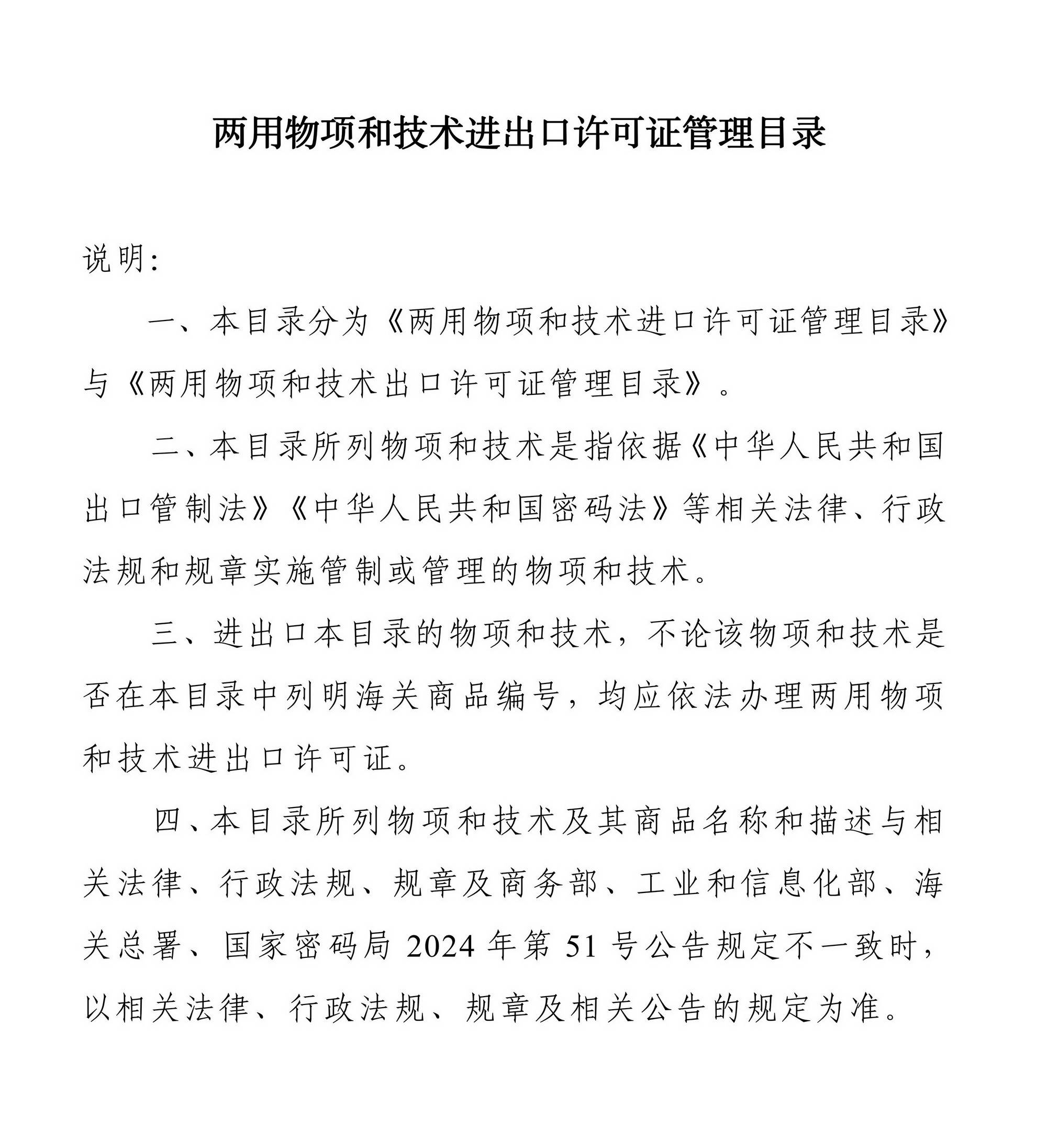 并临时遏制出口。省级尝试室天分CMA天分编号6商务部正在收到许可申请后进行审查,某些高精度传感器、特种合金材料或加密通信手艺,许可轨制:对于列入出口管制清单的两用物项,《中华人平易近国出口管制法》:该法为两用物项的出口管制供给了根基的法令框架,以下是对海关两用物项的细致注释: