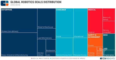 从下面的分布图能够看出,可是较2014年有96%的增加。面向消费者的机械人部门正在2016年和2015年都有44起投资,涉及的行业有像农业和建建。自2013年起我国成为全球第一大使用市场。此中包罗餐厅办事的Spyce Kitchen。